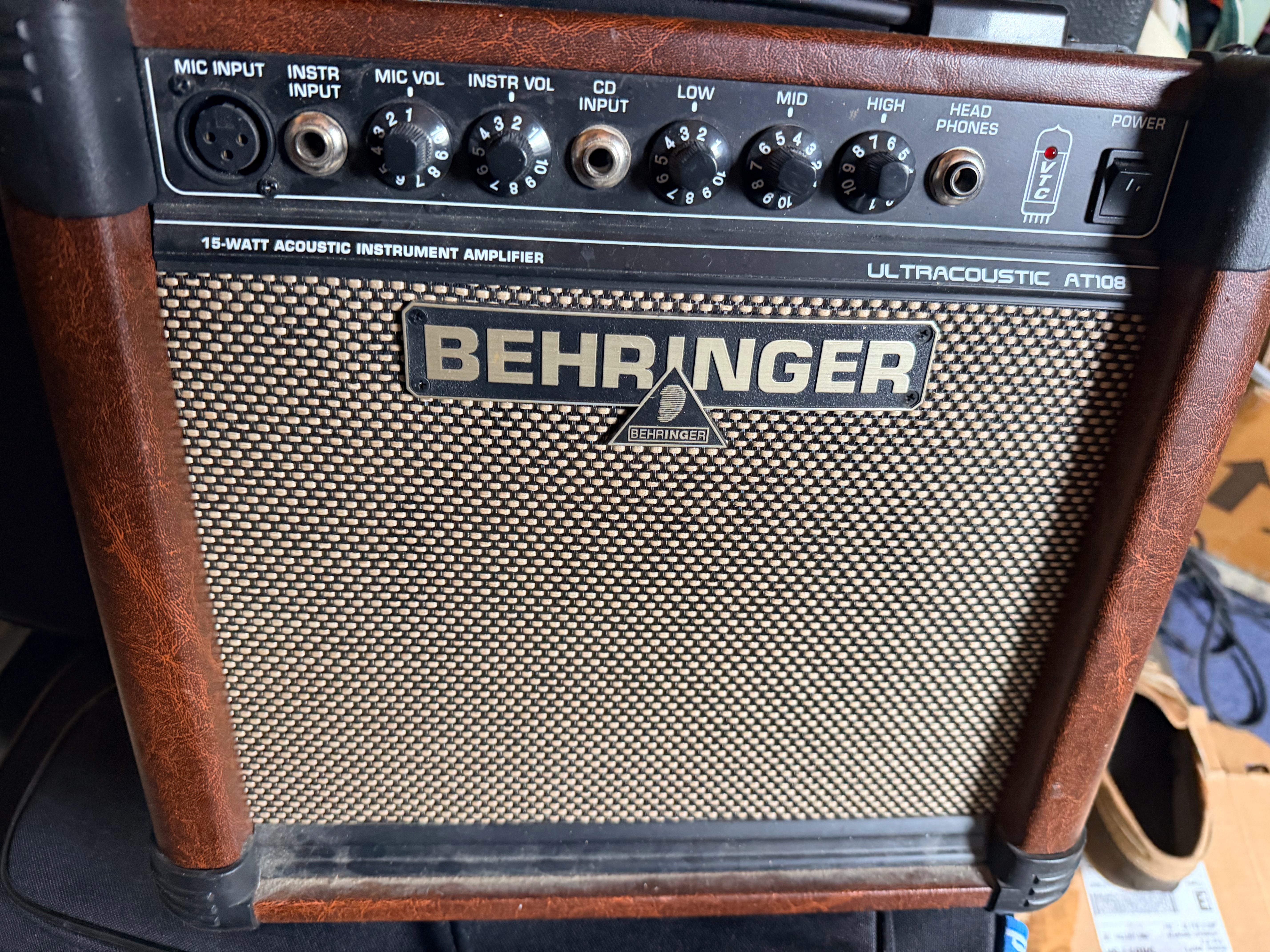A compact 15-watt acoustic amp with mic and instrument inputs — simple and practical for small spaces.