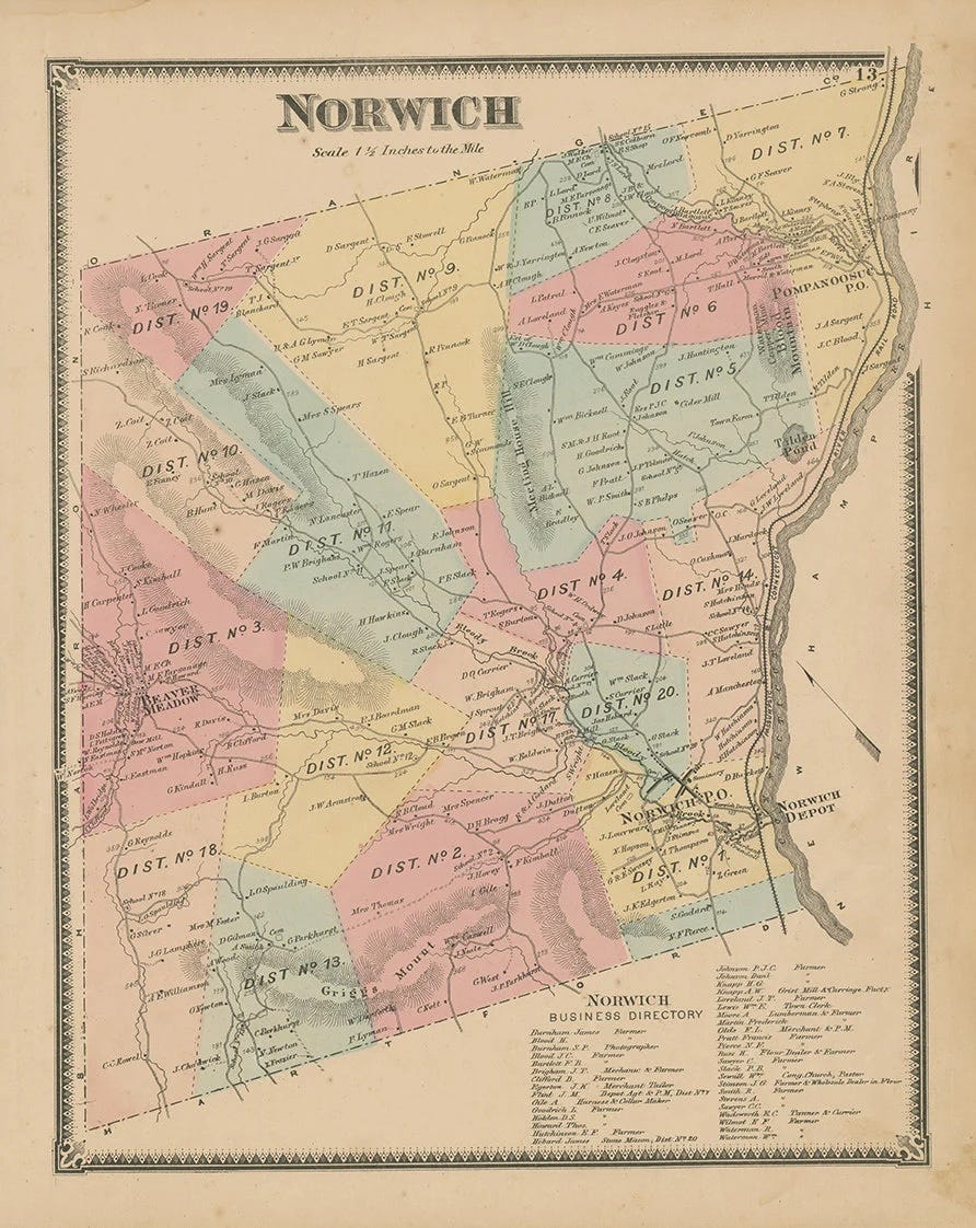 It’s hard to fathom now, but Bicknell Schoolhouse was just one of 20(!) different schoolhouses in Norwich in 1869: