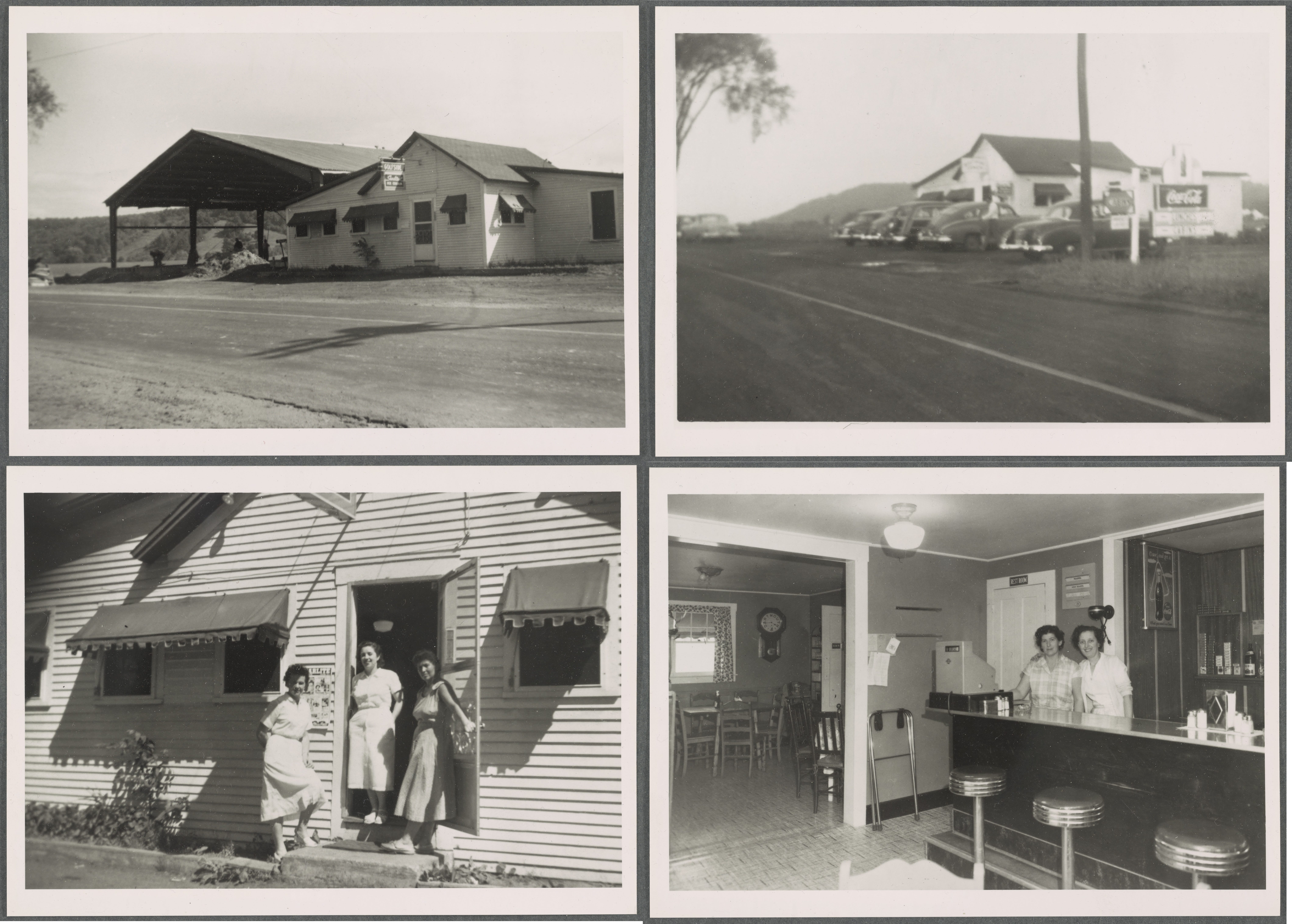In the first photo, you can see the trails of Oak Hill at Storrs Pond, then Dartmouth’s main ski area. The third photo shows a poster for the former Starlite Drive-In at 53 Route 10 in Orford, which opened June 1, 1952. The likely “Woodie” and Chevrolet Fleetline parked outside help confirm the early Fifties date. The last photo shows the interior, with owner “Mrs. Robt. Whitney” on the left.