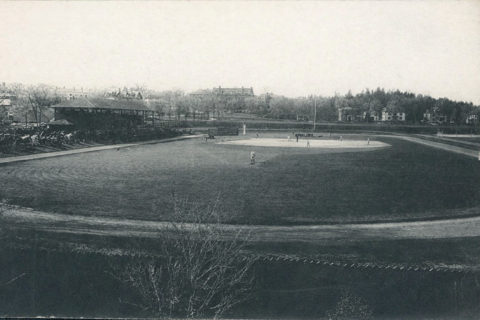 In the original photo below, you can see the 1906 team on Memorial Field, before the current football stadium and Red Rolfe Field were built.