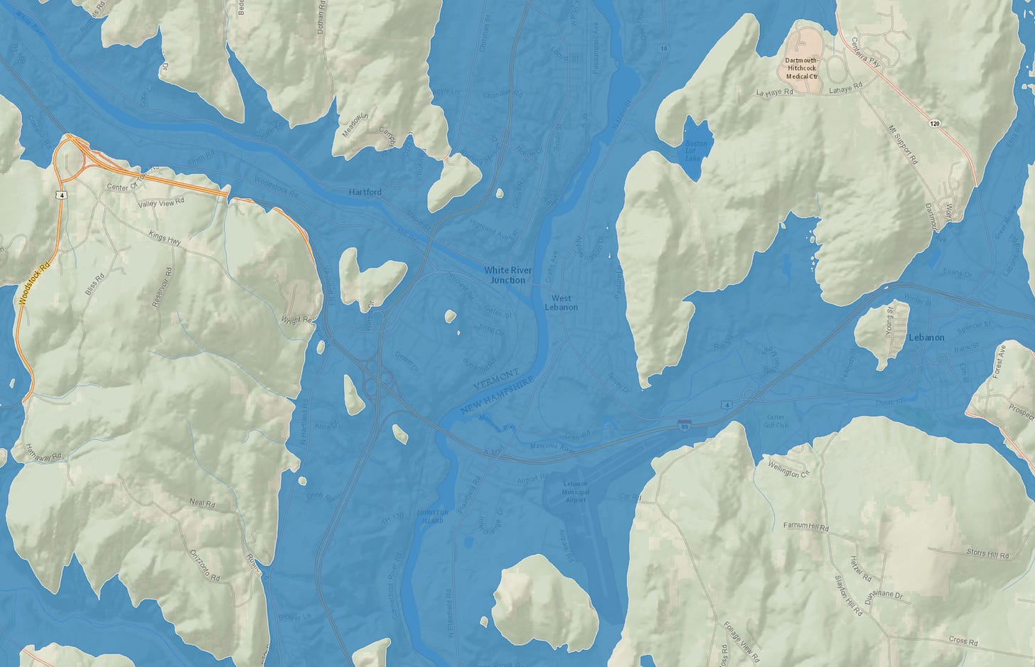 The map above makes the best jigsaw puzzle, but this map is better for exploring: interactive, with towns, roads, and other features labeled. You can zoom into your neighborhood to see if you were part of Lake Hitchcock some 12,000 years ago. Bible literalists will quibble.