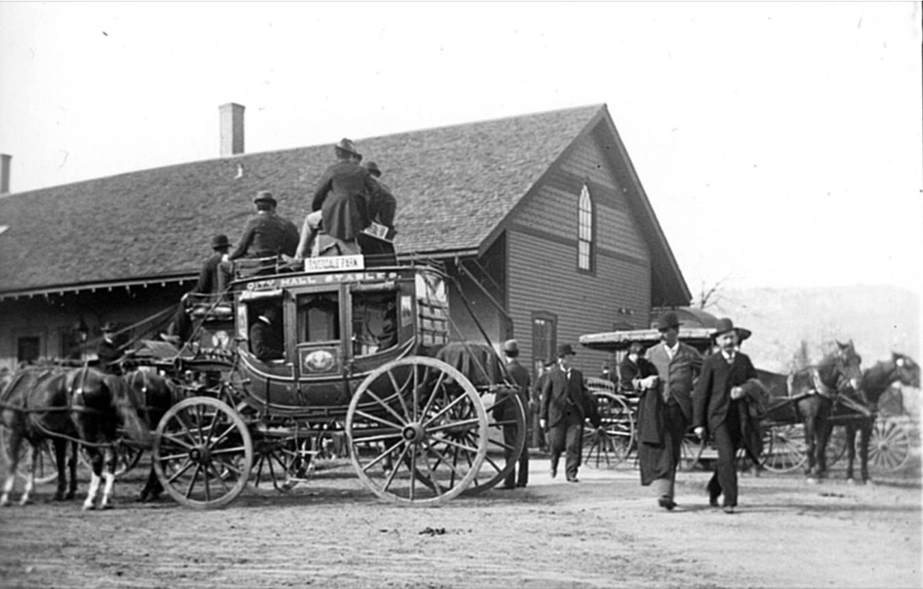 Passengers arriving at the Lebanon Depot, en route to the racetrack
