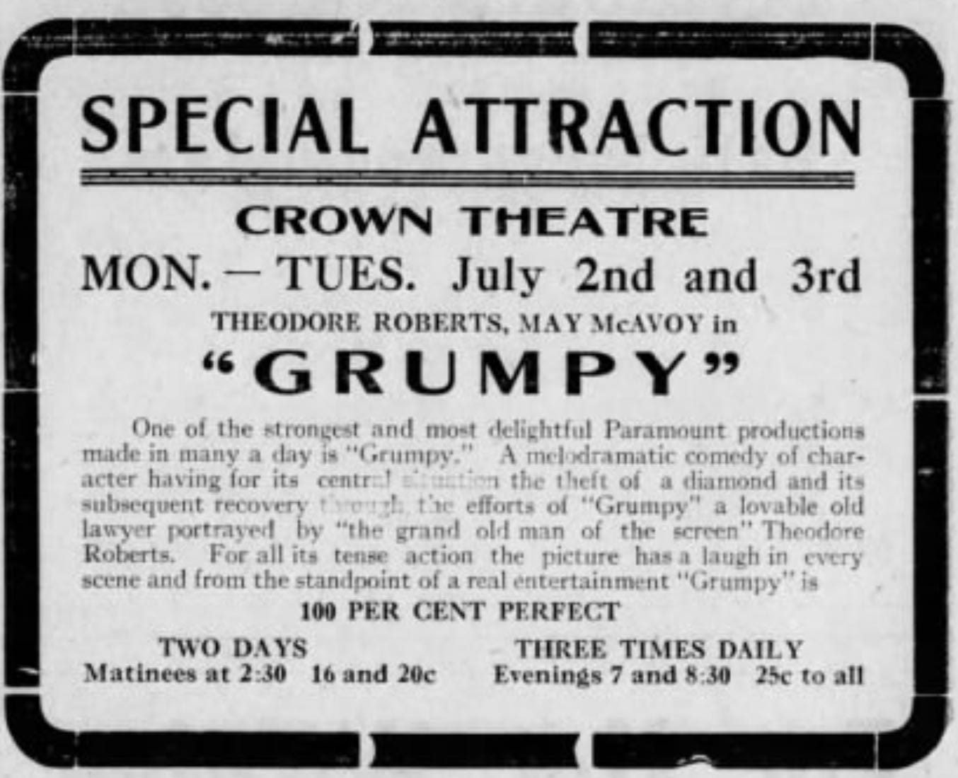 The Crown Theater closed in 1927, soon after the now-defunct Strand Theater was built on North Main St.